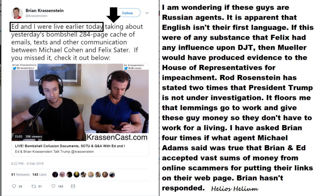 The Pacific Standard Reports has been watching and collecting the Krassensteins’ posts and Helios Helium’s critiques of the bothers’ posts.