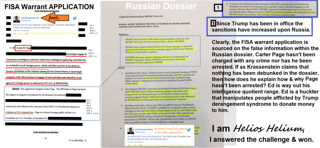 It is improbable that a single person could go through all the documents that Helios Helium appears to have done. We have seen the posting of, Steele dossier, FBI report on Hillary Clinton, Comey’s memos, Comey’s transcribed testimony of late, the United States Foreign Intelligence Surveillance Court report of surveillance abuse, the Fusion GPS testimony transcript, the Grassley intelligence memo, the Benghazi transcripts, the United States Foreign Intelligence Surveillance Court surveillance application on Doctor Carter Page, Hillary Clinton’s State schedule, Hillary Clinton’s email’s, John Podesta’s emails the DNC’ emails and more all posted by Helios Helium. A group of people?