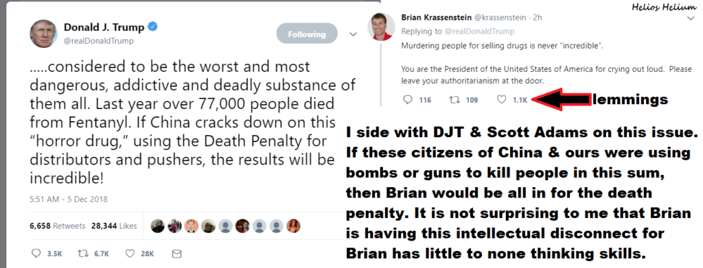 We will point out that President Trump in his post did not pine for the killing of United States citizens who sell Fentanyl. Brian is inferring that President Trump did. That is an internal matter of China’s as to how they punish people who sell Fentanyl.