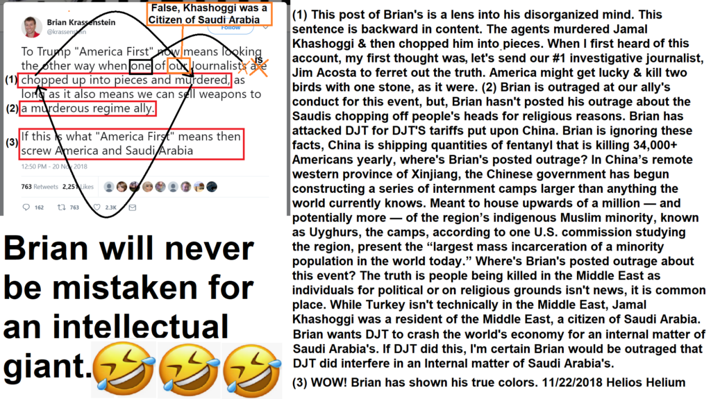 Here we see Helios Helium using Brian’s own posts against him. This is the work of a genius.